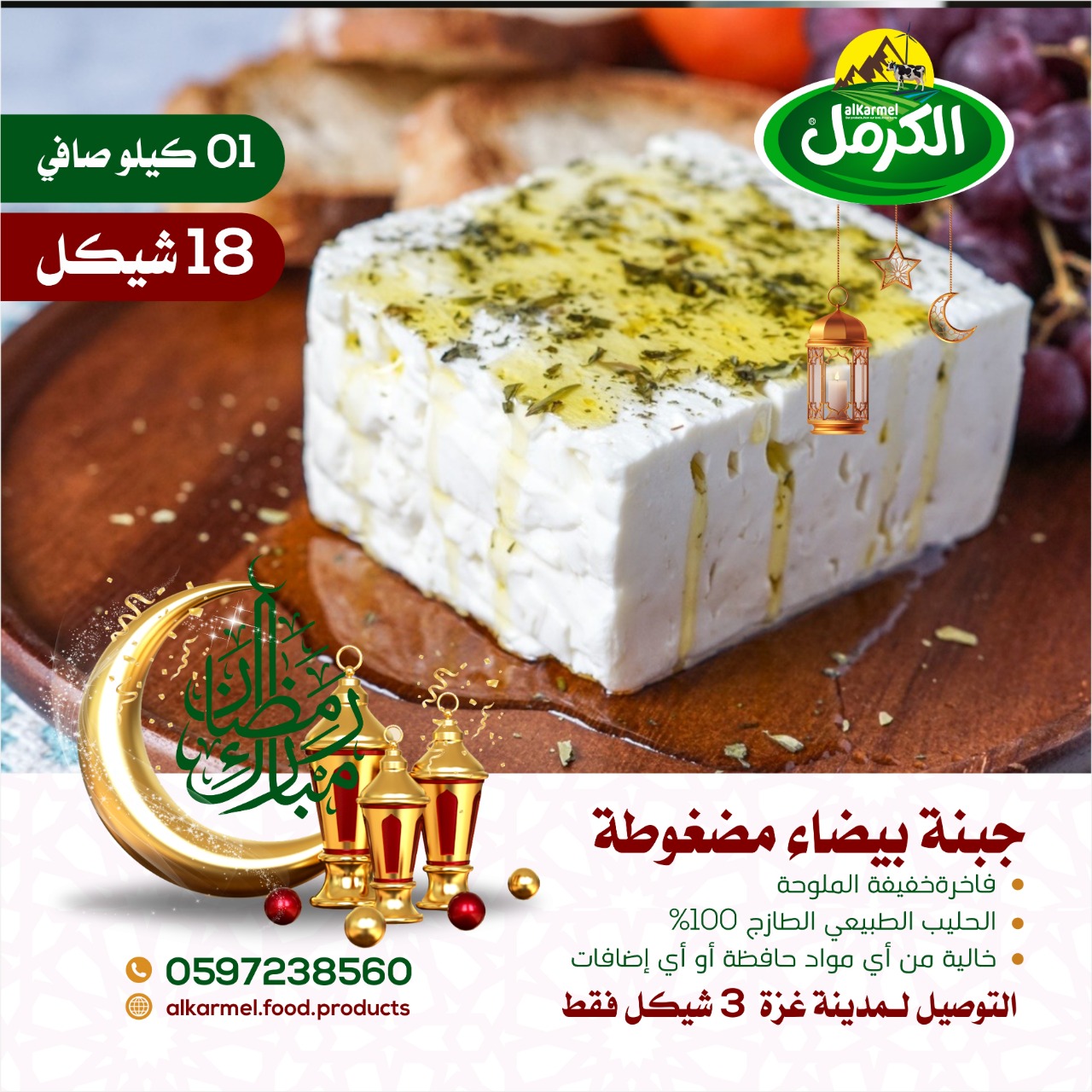 جبنة بيضاء مضغوطة مصنوعة من الحليب البقري الطبيعي 100% خالية من أي مواد حافظة أو إضافات ملح خفيف